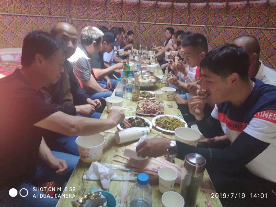 瞧!切肉的、串串的、烧烤的、吃串的,大家忙的不亦乐乎。欢声笑语随着缕缕炊烟萦绕在空中。